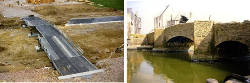 The real bridge used for the Ramelle set (left) and how it looked in the film (right)