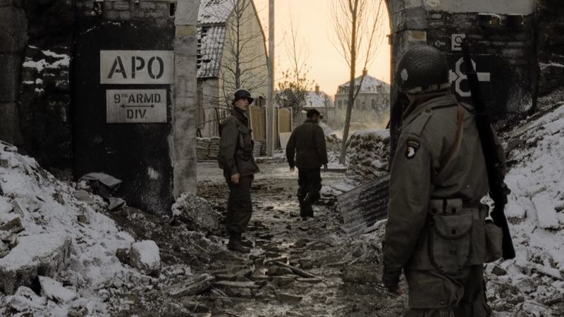 In its new incarnation, the set covered 12 acres and stood in for 12 different locations all over Europe, including Carentan in Normandy, Haguenau in Eastern France, Bastogne in Belgium, and Eindhoven in the Netherlands. The same buildings were given different dressings and shot from different angles to create the convincing illusion of being different locations where Dick Winters led his men to battle (13 things you didn't know about Dick Winters)