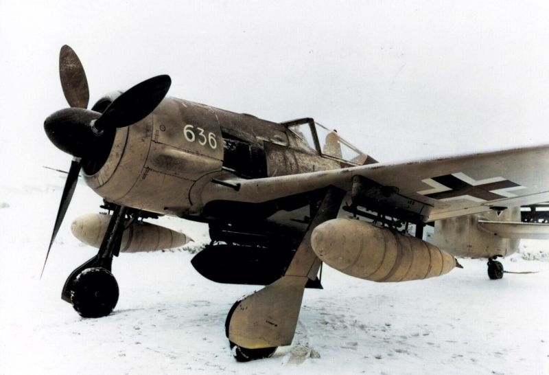Fw 190 G-1 with a 250 kg (550 lb) bomb and underwing drop tanks