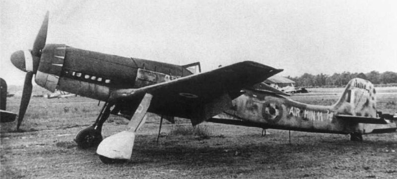 A captured Fw 190 D-9. This model can be recognized by its extended nose and tail, and the exhaust manifolds near the engine cowling.