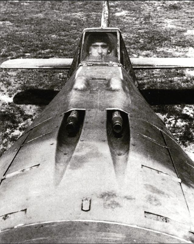 Frontal view of the Fw 190, with the two machine guns over the engine visible. Note how cramped the cockpit was.